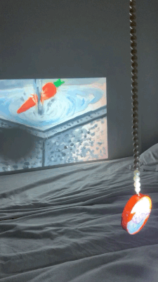 Pussysteamin' , Installation, Animation, Stuhl, LED-Ventilator, Regenbogenfolie, Ausstellung zusammen mit Eva Szecsödy, Kunstverein Olten, 2016